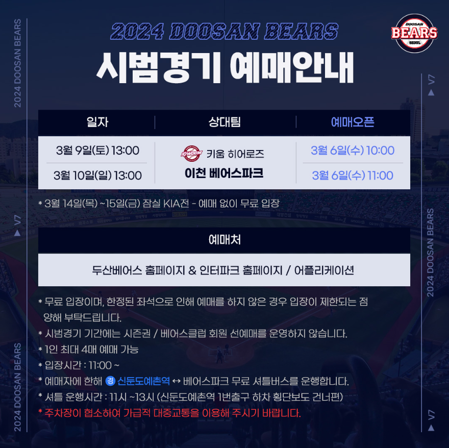 *3월 16일, 3월 17일 두산-SSG 문학전 티켓 정보 안뜸